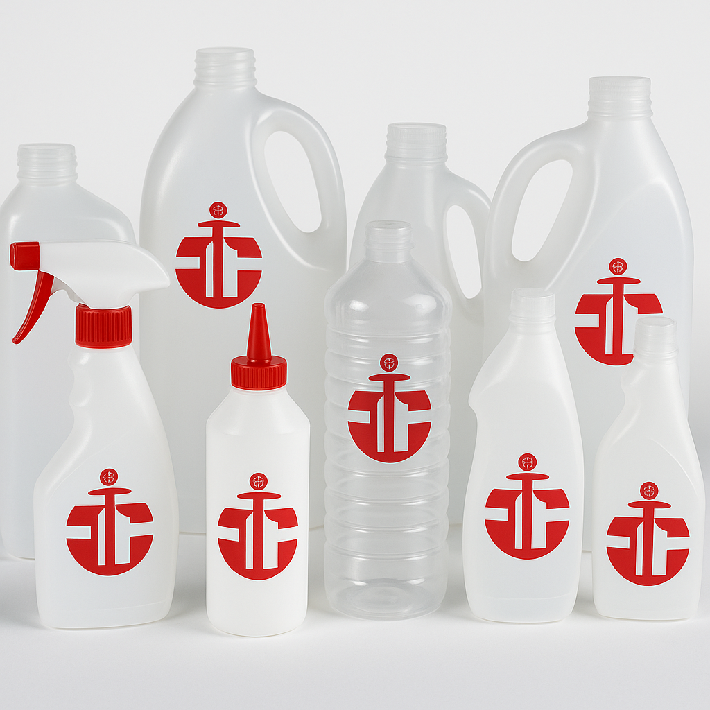 Utilizamos materias primas de alta calidad como PP, PET y PEHD, podemos personalizarlos con el color, logo o eslogan corporativo con diferentes técnicas de personalización y podemos incluir diferentes tipos de tapón o dosificador.